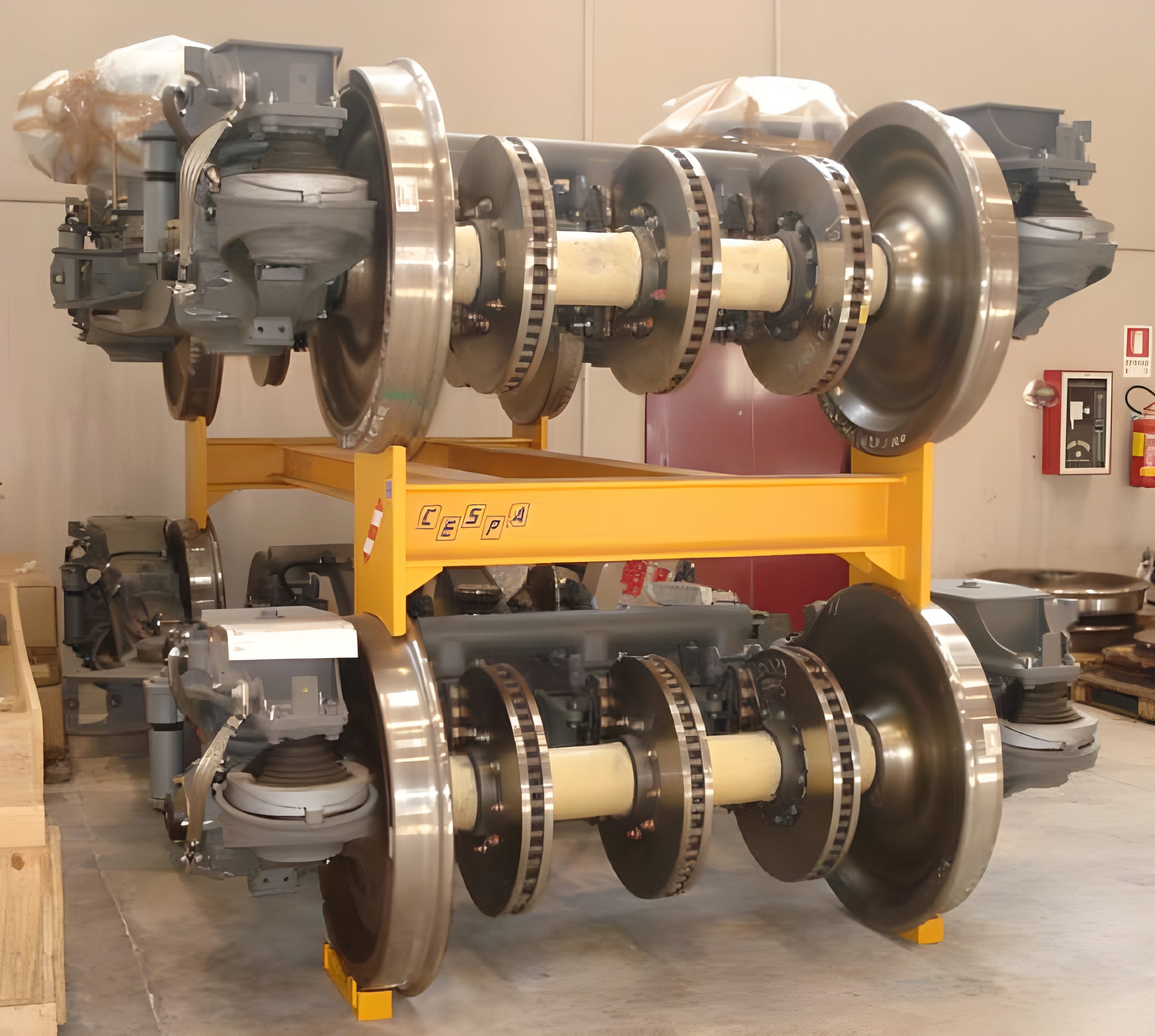 Säkerhetsboggier används vid svarvning av hjulaxlar tillsammans med mobila hjulsvarvar för att säkerställa stabilitet och säker positionering under bearbetningsprocessen. Konstruktionen avlastar och stabiliserar hjulaxeln, vilket bidrar till hög precision, trygg drift och en säker arbetsmiljö vid underhållsarbeten i depå och verkstad.
