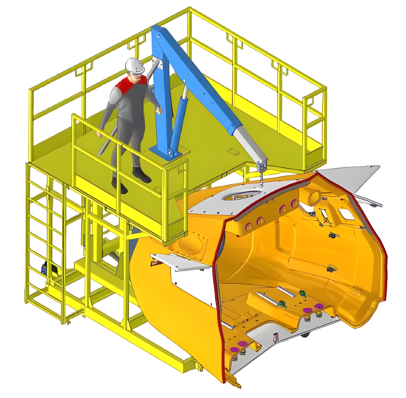 Plattformar utvecklade för arbete inne i järnvägs- och tunnelbanefordon under underhåll, montering och inspektion. Konstruktionen kan anpassas efter kundens arbetsprocesser och fordonsspecifikationer.
