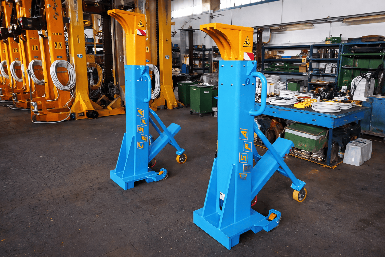 Mobila hydrauliska domkrafter används för säker och flexibel lyftning av järnvägsfordon vid service- och underhållsarbeten. Den manuella hydrauliken möjliggör exakt höjdjustering och stabil upplyftning av fordonets lyftpunkter, vilket ger en säker och ergonomisk arbetsmiljö i depå- och verkstadsmiljöer. Den mobila konstruktionen gör utrustningen enkel att positionera och anpassa efter olika arbetsmoment.